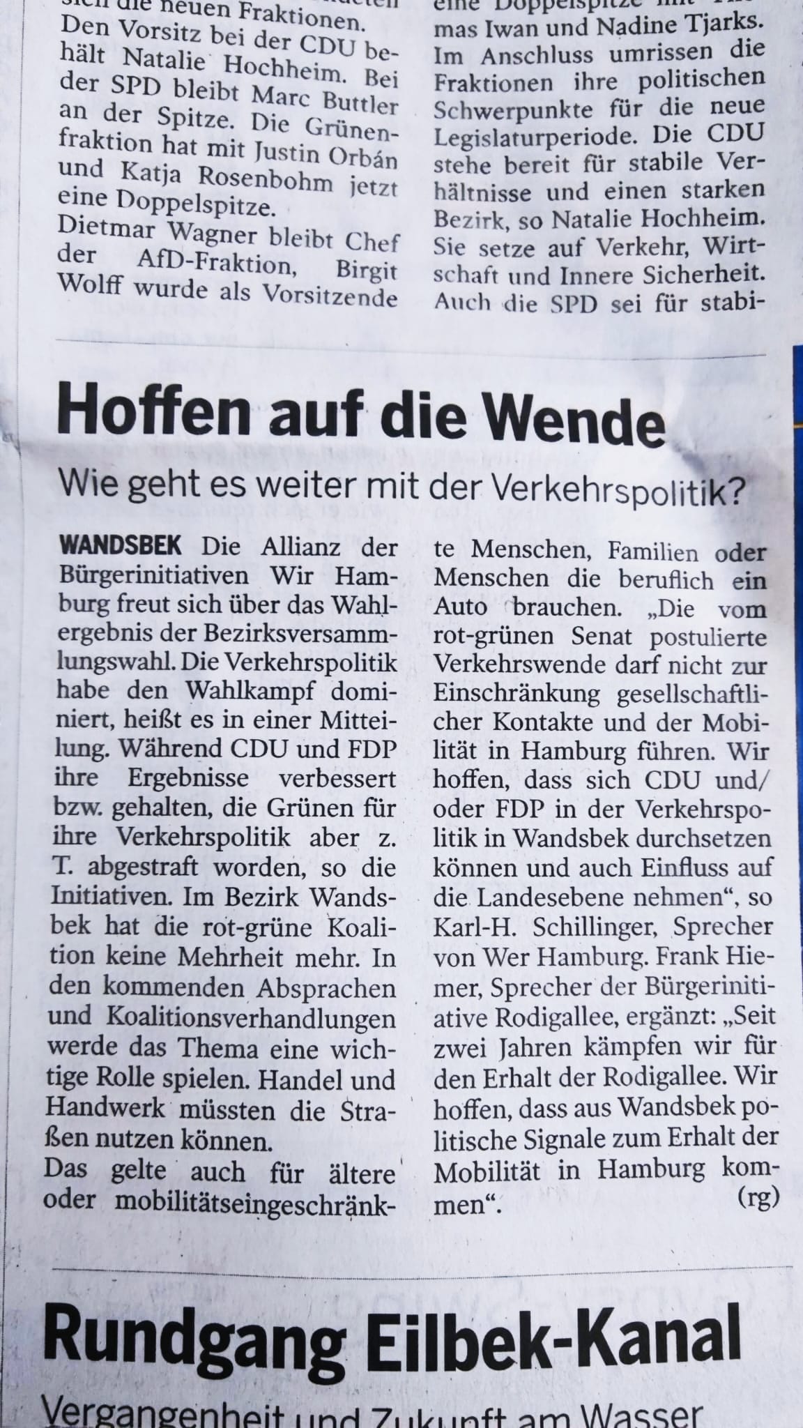 Menschen haben uns unterstützt. Wir hoffen, dass aus Wandsbek politische
